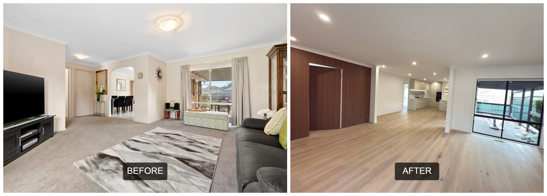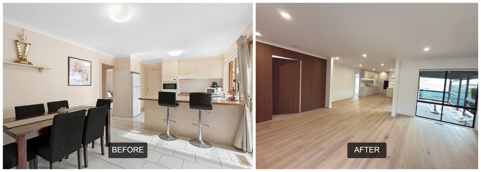 Comprehensive home upgrades including structural changes, flooring, wall removal, repainting and complete modernisation of older homes.
