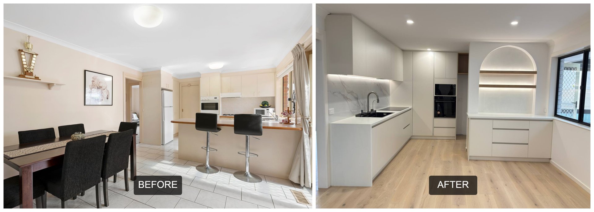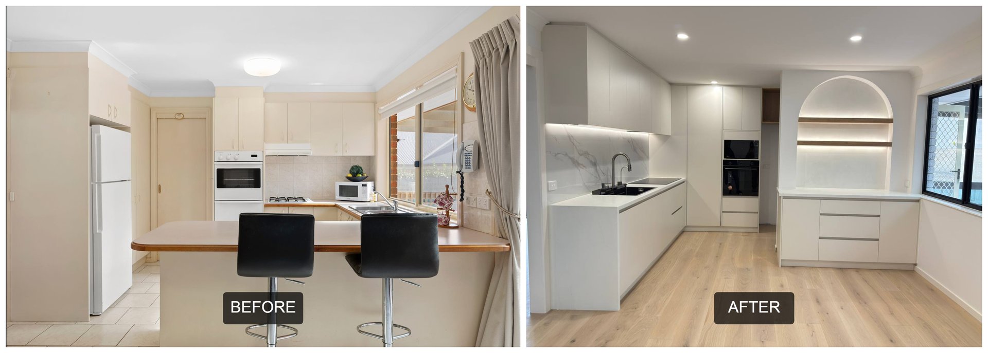 Modern, functional kitchen upgrades including layout redesign, cabinetry, benchtops, tiling, plumbing and electrical work